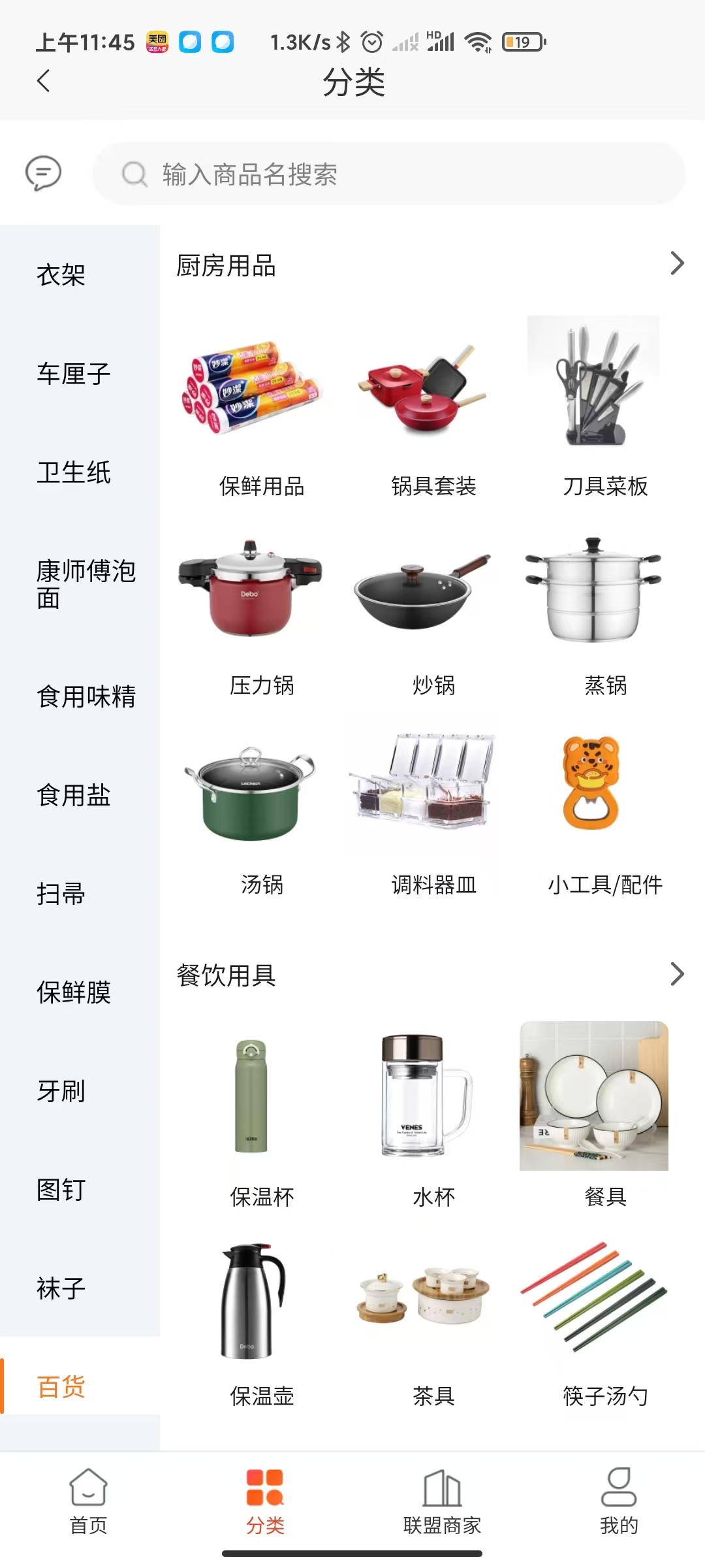 可以通过分类浏览百货商品的各种商品,也可以通过搜索功能,搜索你需要的商品。